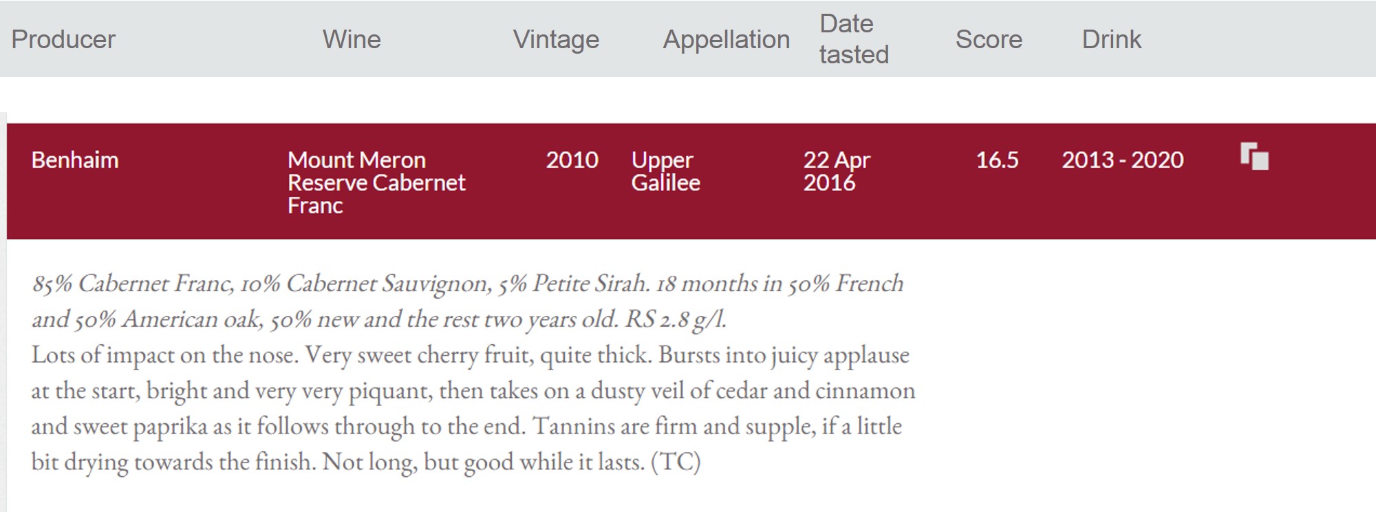 CABERNET FRANC RESERVE 2010